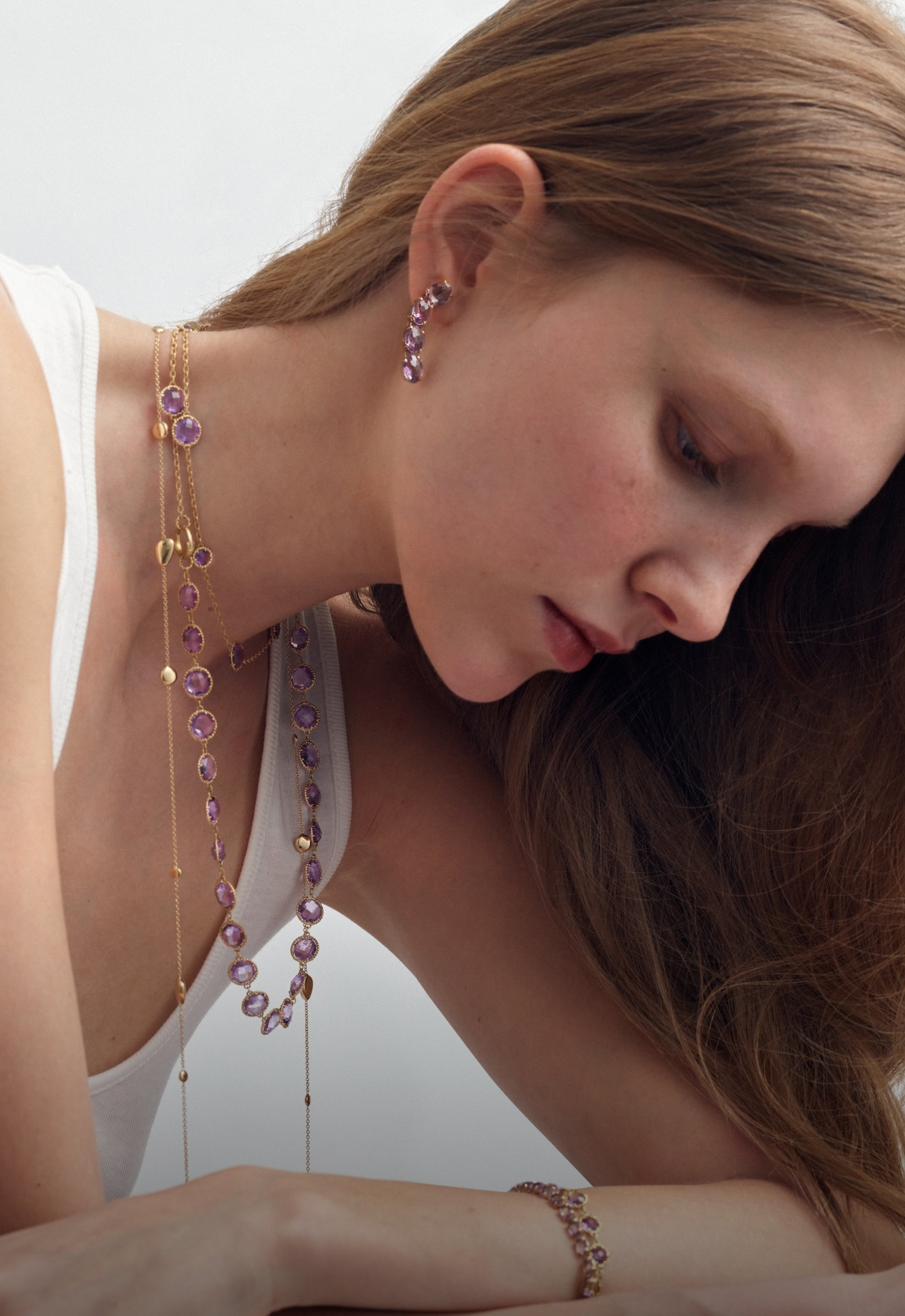 Goshwara Beyond 18K Yellow Gold Amethyst Beads & Tumbles Necklace
