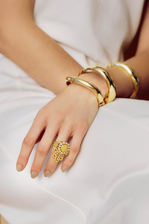 DamianiDamiani Spicchi di Luna 18K Rose Gold, and Diamond Sunstone Dome Ring Sz. 5.75