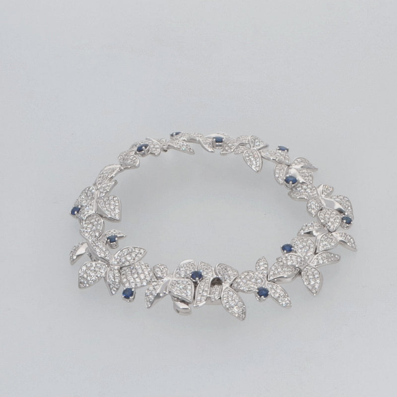 Exuding elegance and timeless allure, this refined bracelet showcases a dazzling interplay of white gold, sapphires, and diamonds. Designed with meticulous attention to detail, it offers both a luxurious feel and an understated charm, perfect for complementing formal attire or adding a touch of sophistication to everyday wear.