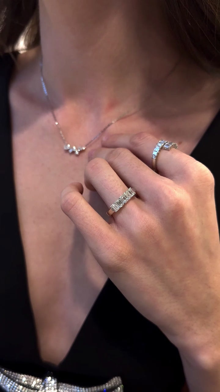 Ina Mar 14K White Gold Emerald Diamond Band Ring Sz. 7