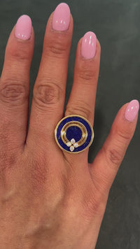 Roberto Coin Love in Verona 18K Rose Gold Diamond & Blue Lapis Statement Ring Sz. 6.5