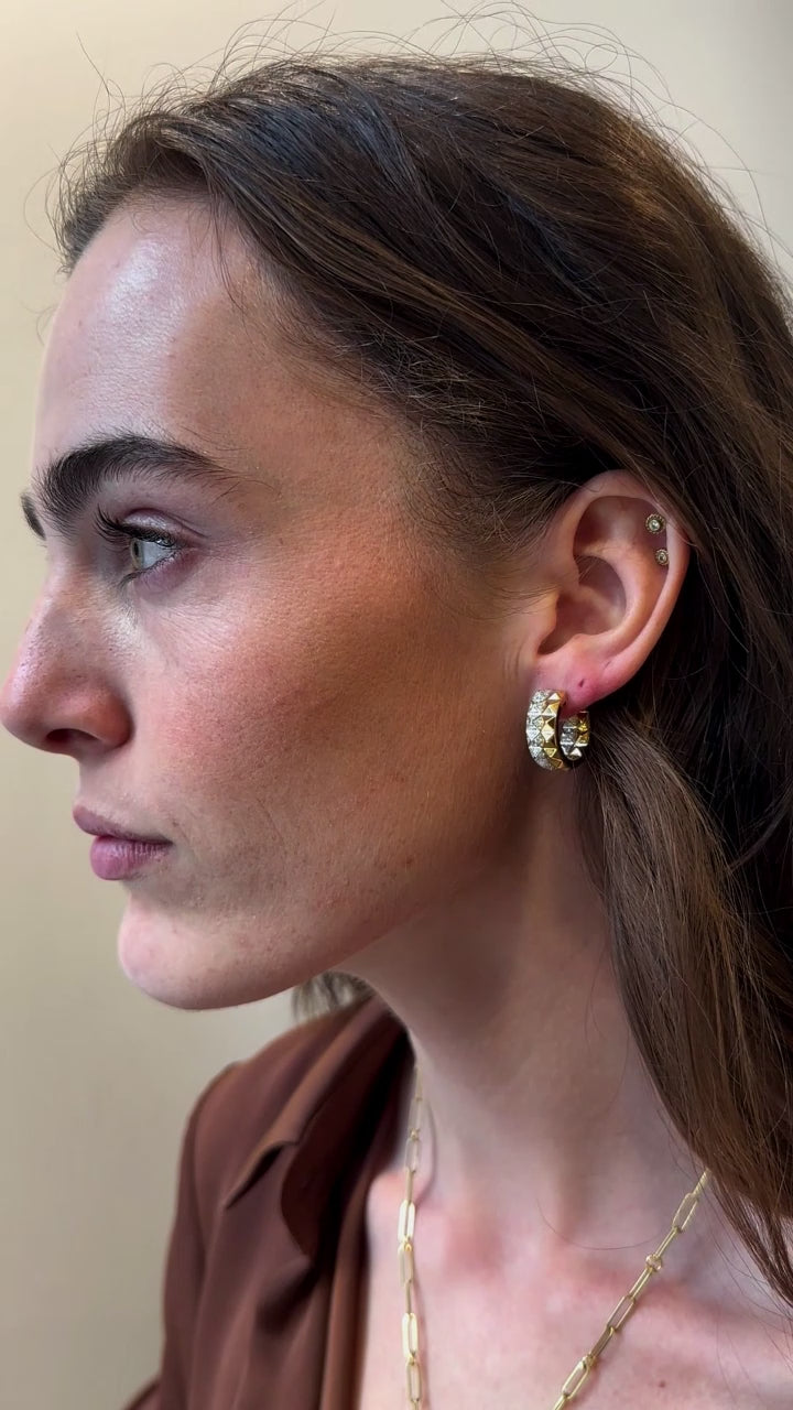 A striking blend of elegance and contemporary design, these Roberto Coin Obelisco earrings are crafted from 18K yellow and white gold and feature a total of 0.75 carats of brilliant diamonds. The architectural lines of the Obelisco collection are perfectly balanced with the sparkle of the diamonds, creating a refined yet modern aesthetic. Expertly handcrafted in Italy, these earrings offer a luxurious statement piece that effortlessly enhances any ensemble.