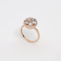 A graceful interplay of cool and warm tones, this ring pairs the serene sparkle of blue topaz with the refined brilliance of diamonds. Crafted in 18KT rose gold, its 14mm top offers a delicate yet striking presence. Designed with Italian artistry, this size 8 ring is a sophisticated choice that adds elegance and color to any occasion.