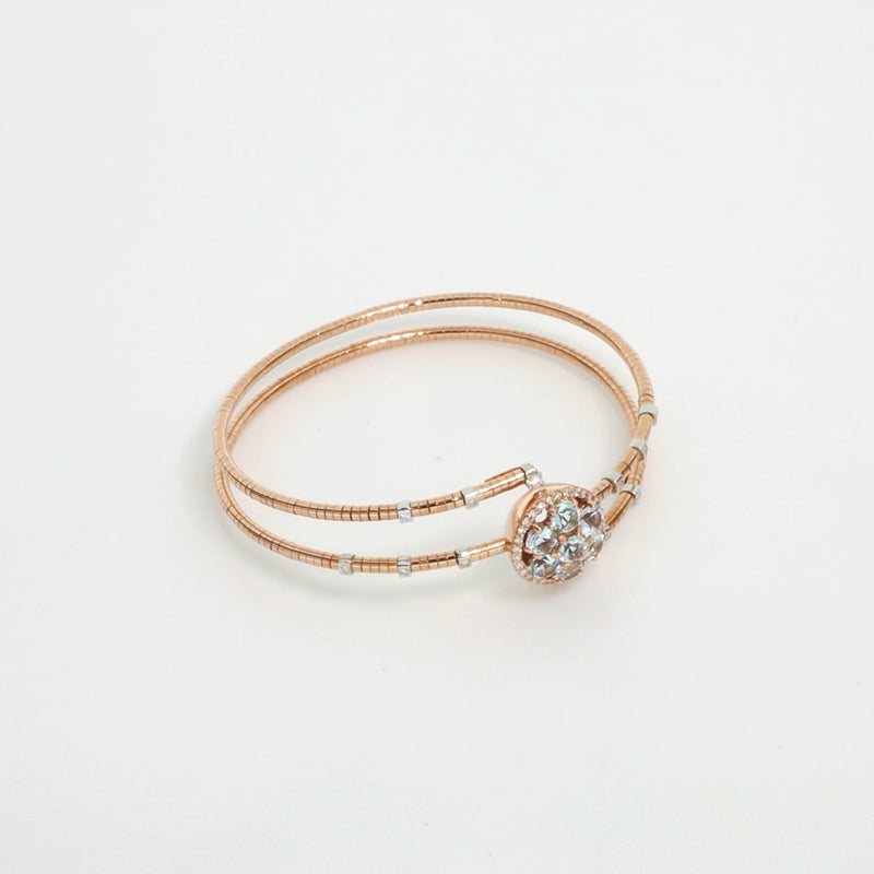 Sleek and modern, this 18K rose gold bracelet features radiant blue topaz accented with sparkling diamonds for a touch of refined brilliance. Designed with a titanium spring, it fits comfortably on a 7" wrist and bears the 750 hallmark along with Italian maker’s marks, reflecting Tavanti’s signature craftsmanship. Perfect for everyday elegance or special occasions, this bracelet combines contemporary design with timeless luxury.