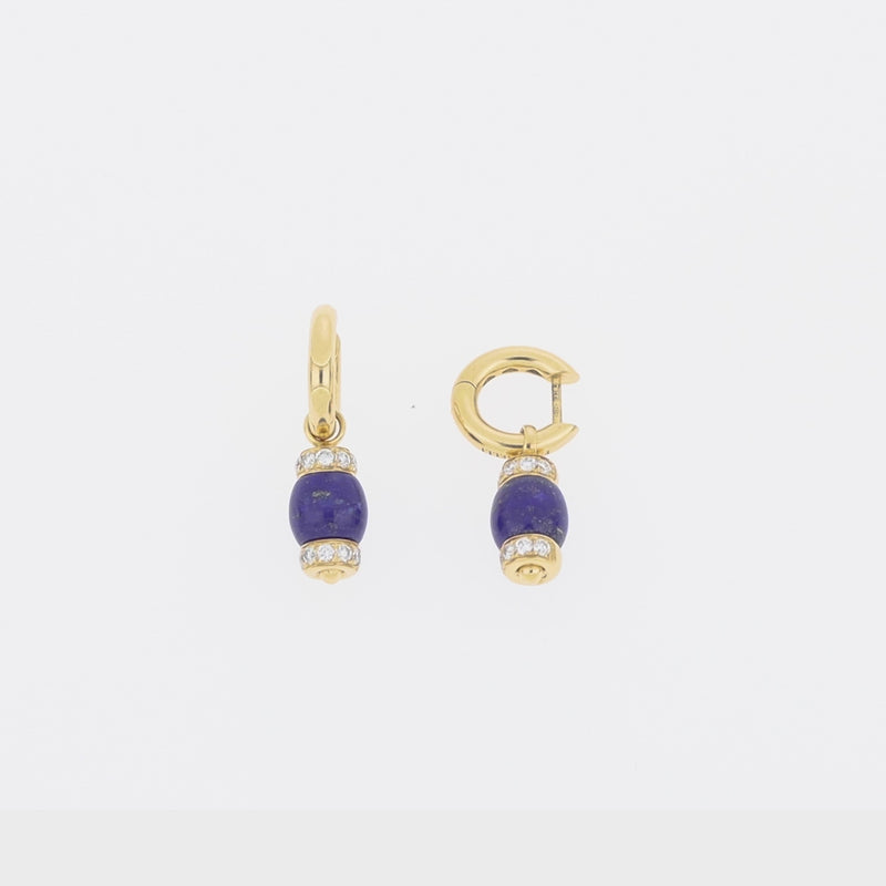 These versatile drop earrings showcase the deep, celestial blue of lapis lazuli paired with 0.70ctw G Si diamonds, all set in warm 18K yellow gold. Measuring 30mm in length, the removable drops offer effortless style customization, allowing you to wear them as elegant studs or dramatic drops. Crafted by Tavanti with meticulous attention to detail, each earring bears Italian maker’s marks and a 750 gold stamp, combining striking color, sparkling brilliance, and refined craftsmanship in one sophisticated design.
