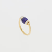 Bold and elegant, this 18K yellow gold ring features the deep, celestial blue of lapis lazuli, accented by sparkling diamonds for a touch of refined brilliance. Sized at 6.25, it is crafted with exceptional Italian artistry and bears the 750 hallmark, ensuring authenticity and quality. Perfect as a statement piece, this ring combines classic luxury with vibrant color, making it a versatile addition to any collection.