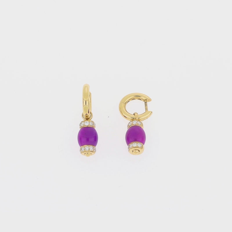 Radiating charm and versatility, these earrings combine the soft allure of pink jade with the brilliance of diamonds set in glowing 18KT yellow gold. Measuring 29mm in length, their removable drops allow for two distinct styles in one elegant design. Crafted with Italian precision, they are a graceful expression of luxury and creative artistry.