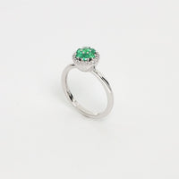 A symbol of refined elegance, this ring glows with the vivid allure of a radiant emerald framed by 0.12 carats of brilliant G Si diamonds. The 18K white gold setting enhances the gemstone’s lush green tones, while the graceful silhouette exudes timeless sophistication. Perfect for those who appreciate understated luxury with a touch of natural beauty.