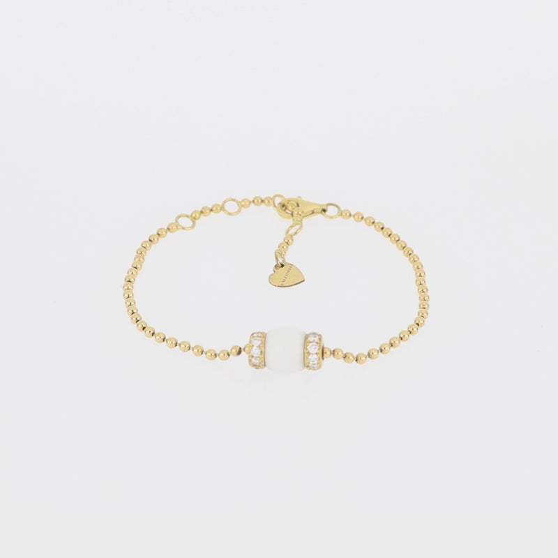 Elegant and modern, this bracelet features the serene beauty of howlite accented by 0.50 carats of sparkling G Si diamonds, all set in radiant 18K yellow gold. Adjustable from 6 to 7.75 inches, it offers a perfect fit with timeless sophistication. A refined piece that blends natural grace with contemporary luxury.