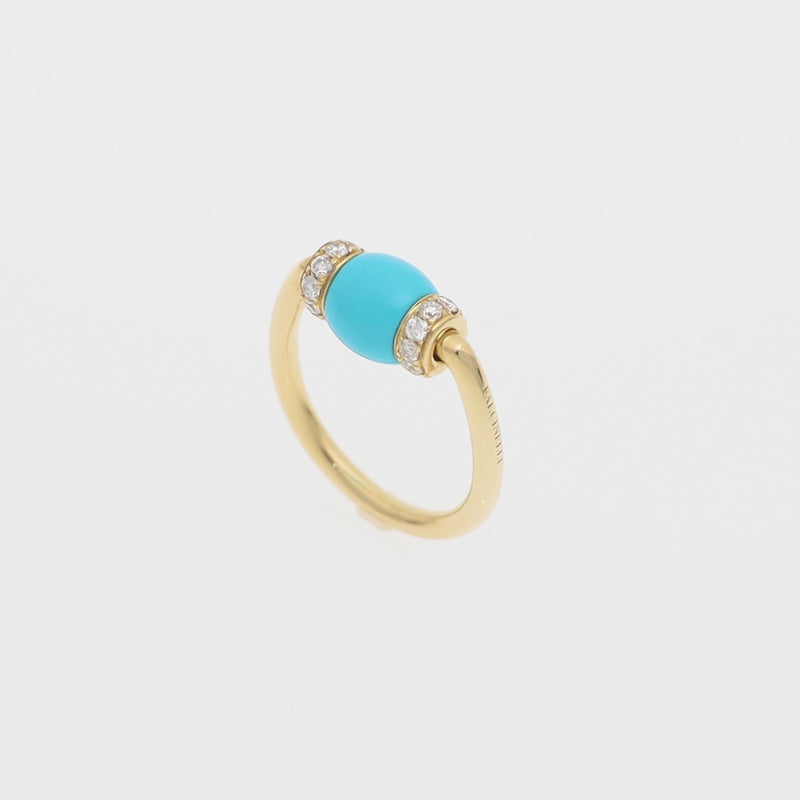 Tavanti Le Carrousel 18K Yellow Gold Diamond & Turquoise Ring Sz. 7