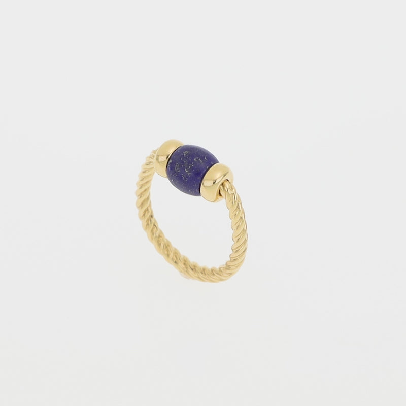 Bold and striking, this ring showcases a deep blue lapis lazuli set in warm 18K yellow gold. Its clean, elegant design highlights the natural beauty of the gemstone, making it a timeless statement piece. Perfect for adding a touch of vibrant color and sophistication to any ensemble.